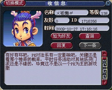 这是一个LG的玩家的比较中立的看法,确实,PK只是梦幻一部分,一切都在几率二字。