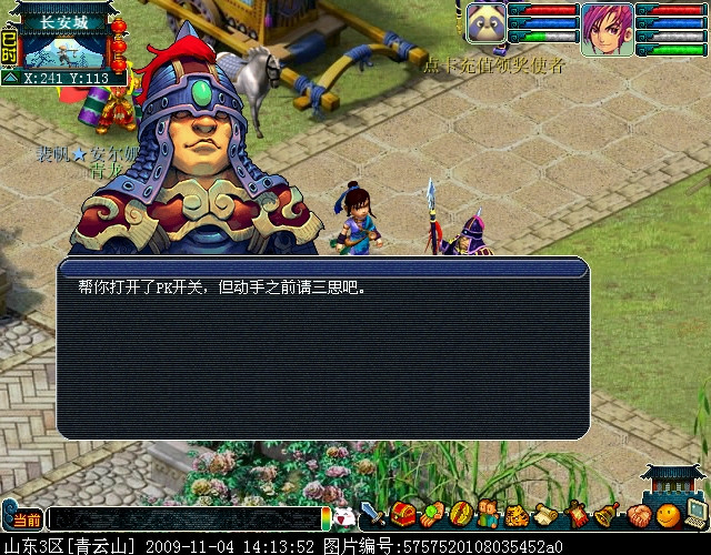 大于或等于30级的玩家可以在长安城找到“PK申请人”,通过对话开启或关闭PK开关。开启开关后24小时(在线游戏时间)内不允许关闭,但是此时间段内如果在被动PK中死亡则PK开关自动关闭,可以再次开启。