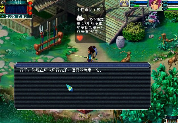 强行PK需要到长寿村找“强行PK申请人”申请,如果玩家当前的人气值≥51、阴德值≥51,并且等级≥30,就可以获得强行PK的权利。多人申请需要分别进行,组队情况下只有队长获得申请。