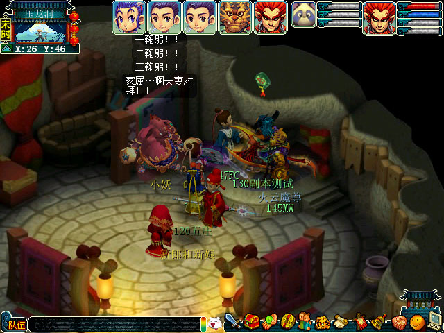 主怪胡媚娘,造型为狐狸精,门派地府或者盘丝,血多,抗高,比较难杀,后排星灵仙子双抗,血一般,