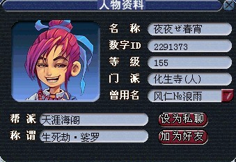 春宵:我们确实都是打工的,给自己罢了。我老婆比较支持我玩游戏的,他们的也是。我们3个不爱打牌,不爱泡吧,唯一的爱好就算是玩梦幻了,所以家里还是比较支持的。