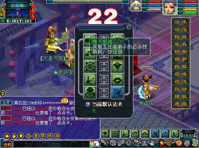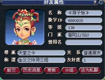 在《梦幻西游》中,指望一派技能包打天下的愿望是不现实的。这款游戏的设计中就蕴涵着真正的玩家互动理念。如果你的门派是A,能够克制A的门派是B,而能够克制B的门派是C,那么你至少需要和C门中的弟子搞好关系,从而牵制B门派,降低B门派对自己的压力。当然啦,这只是下策,与人为善和广交朋友才能让你放心地无敌于天下(莫非这就是传说中的“仁者无敌”?)