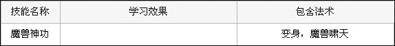 技能解析:魔獸神功下包含技能变身(功效:临时提高伤害力,是使用象形、鹰击、狮搏和连环击的前提)与魔獸啸天(功效:克制天宫弟子的必杀技,使用后需要休息一回合)。155玩家头盔等级≥130可开5孔,提高变身技能6级,临时伤害的提高也是相当可观的;对应的89、109和129玩家头盔开孔数分别为3、4和4,提高技能2级和4级。活动时,对于伤害力的要求没有那么高,单打伤害符足矣。