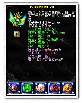 技能解析:此技能为门派符石组合,由于只此组合只对NPC有效,故放置非门派一类;如红笔处圈出所示,此组合为增加等级/3伤害=(例如:155/3+原始伤害),且使用时降低本身5%防御个人认为得不偿失,不建议使用。