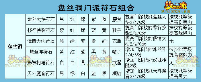 技能解析:这个技能自从更改把法术移到****下面去之后就异常尴尬了,盘丝PK中最大的问题是什么?灵力,吸的命中,速度。虽然可以提升自身的灵力,但是笔者仍然不推荐,毕竟从各方面来看,不管是PK还是活动,这个符石组合都不实用。