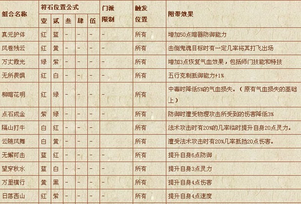 69的童鞋们很可惜不可以使用门派组合,虽然不可以使用门派组合,但是我们可以用属性组合呀。不过个人不推荐69的使用组合,因为门派组合不可以用,属性组合加的也是微不足道的。不过如果想要的话,个人推荐几个符石的组合以供大家参考。