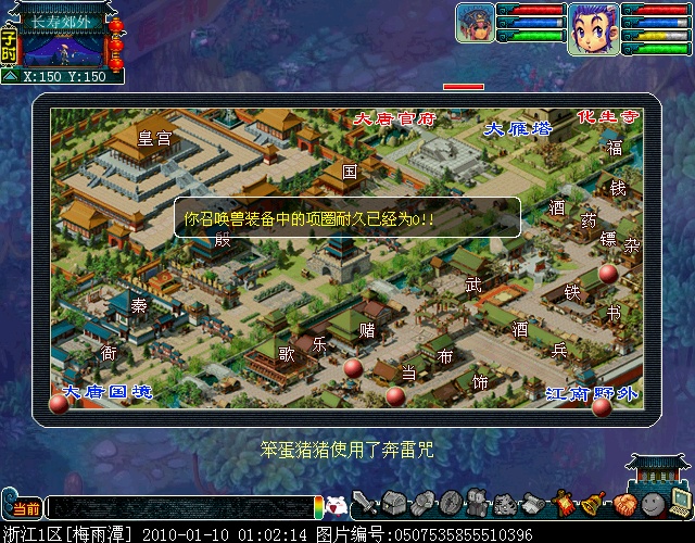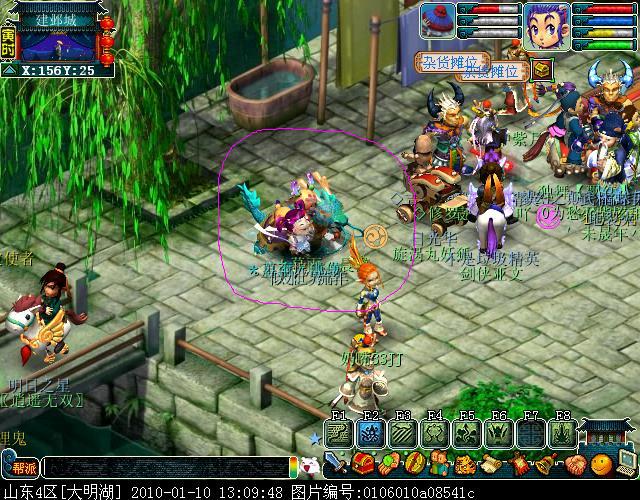 之后,放出你的宠物,我说的不是宝宝,是你在宠物仙子哪里领到的宠物,之后放出大体积的宝宝,比如凤凰,巡游,龙龟,炎魔神等等。再放出你的孩子,坐骑。(推荐使用:变身卡:巨蛙。召唤兽:巡游天神。)这个时候,你会发现,你会发现你当前坐标之内全部都是你放出的东西,很容易混淆敌人视线,如下图。