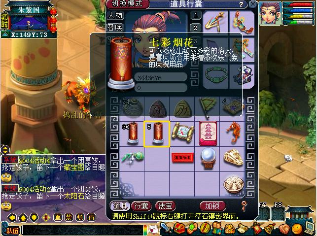 每隔1小时,还会有“捣乱的年兽”出现,在战斗中使用道具“七彩烟花”进行驱赶。在驱赶时有一定几率获得“年兽角”和“年糕”。年糕可以用来提升召唤兽的寿命,年兽角可以用来向长安皇宫内的房玄龄换取奖励。