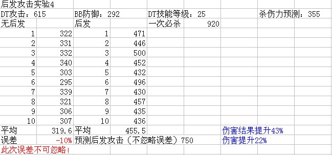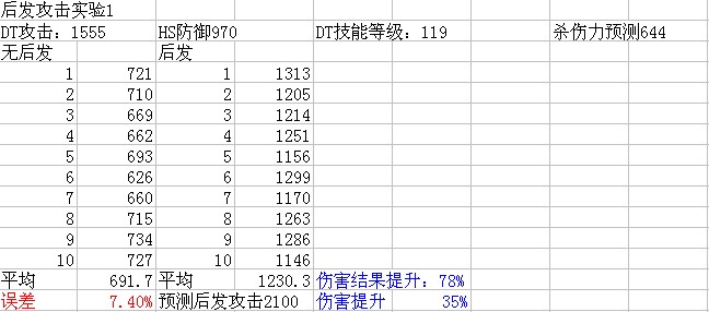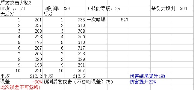 由于后发技能的特殊性以及……测试的困难性(乱敏问题……波动有点大 ),所以得到的数据可能不尽准确,所以希望各位DT玩家(不是DT的也可以练小号 ),有兴趣有时间的话也来验证验证