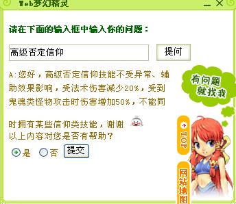 询问梦幻精灵“高级否定信仰”得到的回答如下: