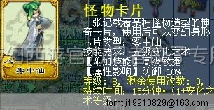 雾中仙卡,速度增加20%,减少10%防御,因为全身多为白色,被玩家们比喻为“白衣飘飘”。