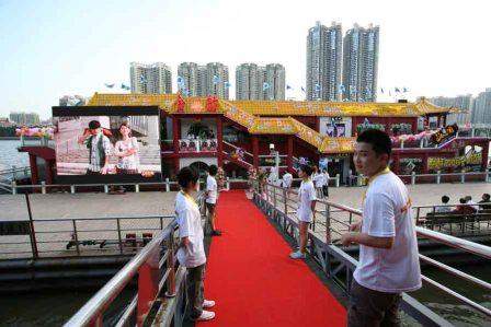 图2:超大屏幕广告,步上红地毯,移动的“建邺城”和“长安城”,即将扬帆启航