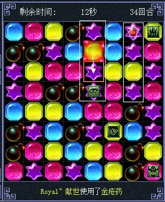 黄色和炸弹交换后,那两个星星会掉下来和旁边的星星连起来。(什么 你问我怎么知道会掉到那里啊,男人的第六感 )