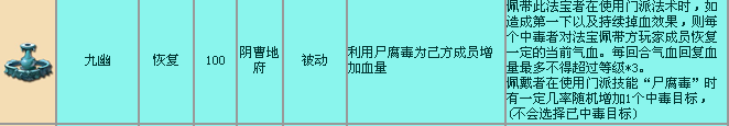 实用法宝。。九幽。。可以用来毒对方血宠而给己方加血。。毒对方高防来打伤。。但是能被七宝所解。。。