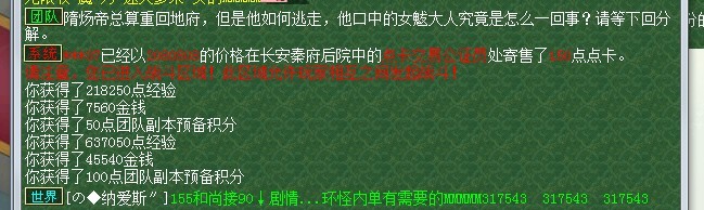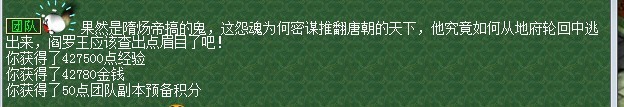 最后真的韩擒虎,给将近6万经验10点积分,第一环完全结束给47万经验,50点副本积分。