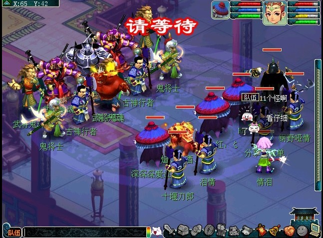 如图上所示,拯救15个之后的经验一个是50W左右的经验,45的副本积分。解救完后场景会刷出10个雨师摸样的韩擒虎鬼魂,这时需要做的就是找出真身,然后灭掉他。最一目了然的分别方法是看队伍里有无变异花妖。在时间允许的情况下,我建议大家先把假的解决,最后再解决真的。如果我先点到了真的,我会叫队员逃跑。等解决完所有的假韩擒虎,再对付真的。