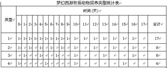 第三类:相同类型动物保持6只,每隔二天养一只,每三天生一窝后便养上,并卖一只17天的,单只卖出价除以3即为单日收入;