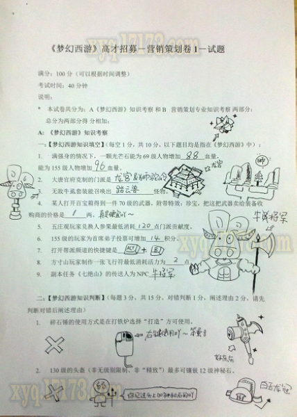 图3:《梦幻西游》策划招募惊现的可爱的漫画答题