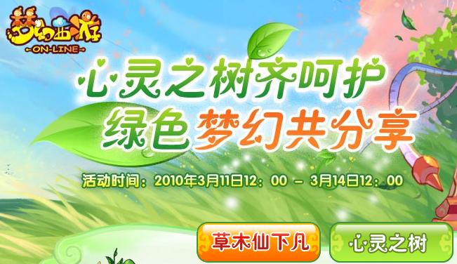 活动开始后,每隔30分钟,建邺城、江南野外、长安城、傲来国、长寿村、朱紫国、西梁女国就会出现大量植树节种子和草木仙子。植树节种子可以直接从地上拾取,而收服草木仙子也可以得到植树节种子。植树节种子可以在东海湾、朱紫国、傲来国播种。