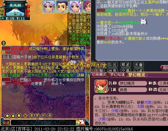 | 第三环:勇擒鼠精限时120分钟 第三环由TG的千里眼传送到副本场景有三条分支 分支一:整支队伍变身为蝴蝶精即能避开洞内巡逻的妖怪,破解太阳、太阴、少阳、少阴四个机关人后,分支任务完成。 分支二:击败洞内的怪物“宝珠妖”和“宝珠怪”,将获得的“定风珠碎屑”交给灵吉菩萨合成“定风珠碎片”,“定风珠碎片”数量足够后,组队在灵吉菩萨处合成“定风珠”,分支任务完成。(合成“定风珠”时记得组队才能获得奖励哦) 分支三:捡取地上属于自己的“铁渣”交给灵吉菩萨,递交足够数量后合成道具“精铁”,合成成功组队前往击败怪物飞龙,将获得的道具“飞龙魂”交给灵吉菩萨后,分支任务完成。 |