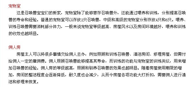 房屋系统推出到现在已经有六个年头了,但是宠物室和佣人房一直很不受玩家的重视,毕竟是使用在召唤兽方面,很都人都舍不得把房子宝贵的空间用来建造宠物室,其实,一个高级宠物室的房子,带给玩家的帮助不比高级卧室差呢!.