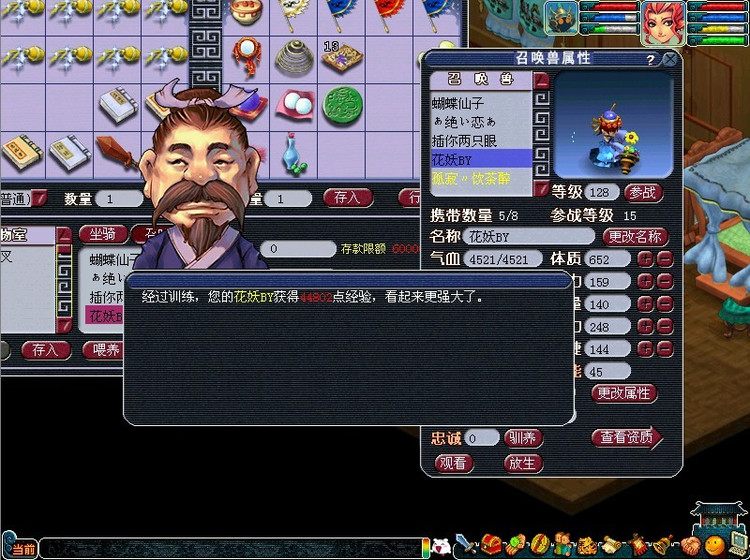 我一只128级的花妖宝宝,在小西天五人组队并领取双倍时间的情况下,每场战斗获得的经验是13104点。而我在房子里训练一次,消耗的体力是84点,获得的经验是44802点!而使用佣人训练的话,一次高达101446经验,效果接近一个500品质的月华露了