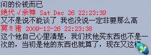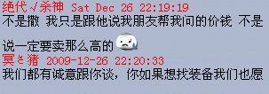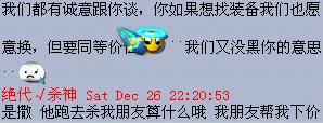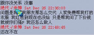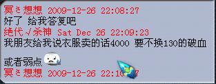 这位是冥家族的成员155级FC,也就是偷袭制造师的人冥想想要买这件130男衣,衣服持有人因不了解价格就找制造师帮忙打听,制造师自己也不知道价格就在帮派为其打听,并将打听到的情况告诉给衣服持有人。在12月26号晚上帮战结束后,制造师星哥遭冥想想偷袭