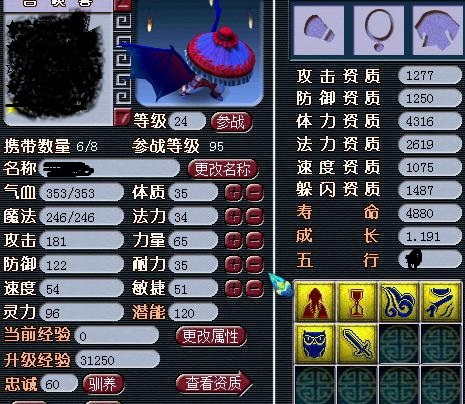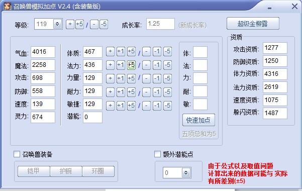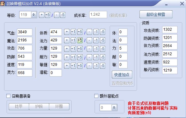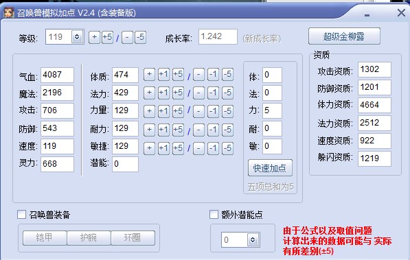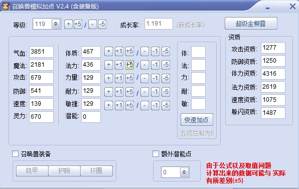 召唤兽气血计算公式:气血=等级×体力资质/1000+成长率×总体质点数X6。