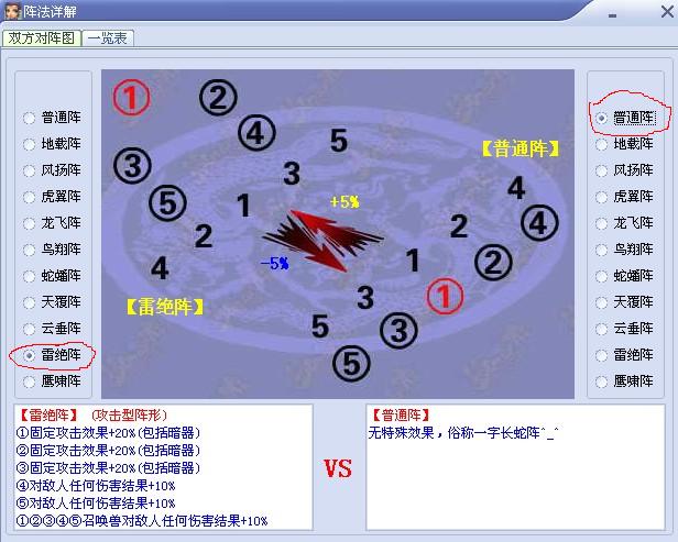 在那个先进的软件中我们清楚的看到了阵法相克的百分比.