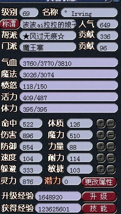 非常强悍的属性点,打了临时后有接近900的灵力了.无级别真疯狂,下面是他的部分装备展示。