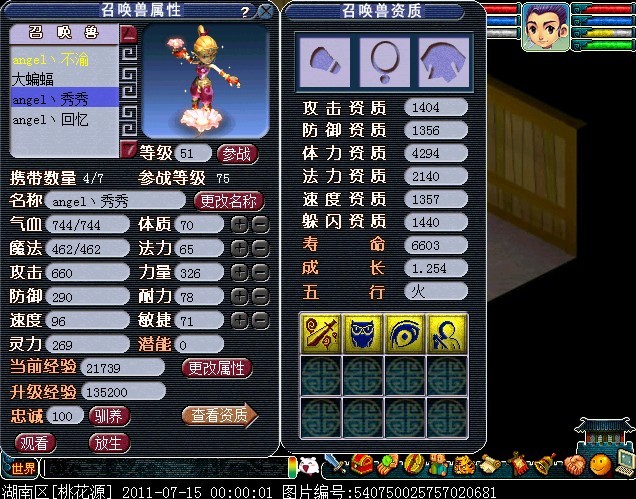 最后2个问题 这宠怎么加点啊 还要不要打连击??这个本来就是拿来活动用的,没想过要去pk.游戏嘛,娱乐娱乐就好了.在现在吸血鬼和龙龟当道,召唤兽动辄就几红10红的梦幻,你是否还记得当初第一次带上芙蓉的感觉呢?芙蓉仙子.清新脱俗。