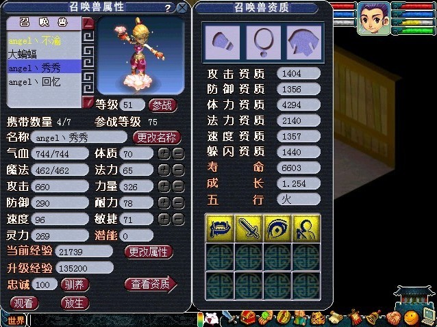 最后2个问题 这宠怎么加点啊 还要不要打连击??这个本来就是拿来活动用的,没想过要去pk.游戏嘛,娱乐娱乐就好了.在现在吸血鬼和龙龟当道,召唤兽动辄就几红10红的梦幻,你是否还记得当初第一次带上芙蓉的感觉呢?芙蓉仙子.清新脱俗。