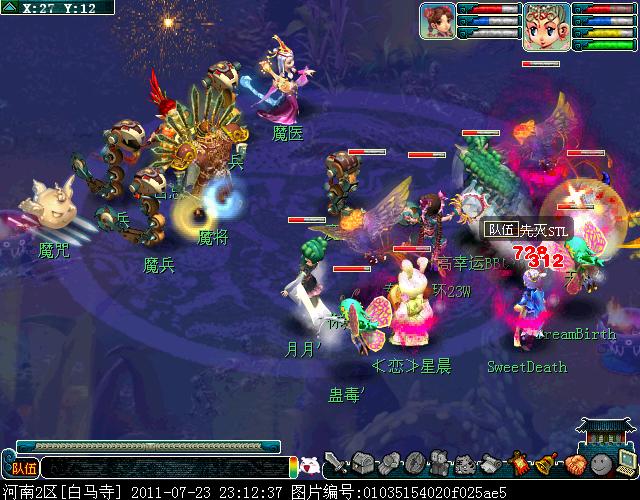 进入战斗后防御,前3回合杀不动怪,等主怪说话把吴天兵秒杀后就可以杀了,后面两个魔医会一直加血可以封,主怪无限雷霆,小怪高攻但是都是普通攻击,战斗比较简单。主怪门派是TG,如果队伍有STL可以使用门派必杀技