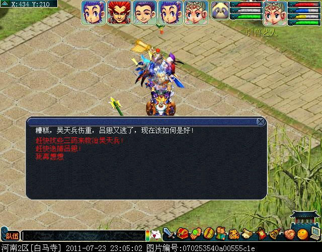 找齐之后找TG守门天将进入特殊场景(话说这场景效果不错)在5个祭台上放上对应的召唤兽之后开杀。