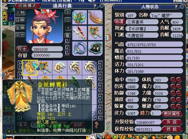 梦幻西游百花园服务器167级女大唐20件高级装备给力直播,其中有特级有专用哦.