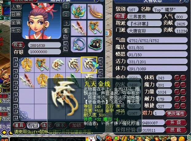 梦幻西游百花园服务器167级女大唐20件高级装备给力直播,其中有特级有专用哦.