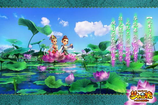 “接天莲叶无穷碧,映日荷花别样红”本是赞誉西湖风光的名句,可在咱们的婚礼盛典现场,满湖莲叶的风光也不输给西湖哦,更何况梦幻的新人们要在这里举行一场浪漫到极点的婚礼盛典,没有那么好的“荷塘月色”来衬托新人,没有那么多莲叶来承载幸福气息的话,怎么行呢?再看看这满湖的莲叶,你会觉得这风格和《梦幻西游》的某张壁纸非常相像:逍遥生和舞天姬手牵着手,一同欣赏满是荷花与碧叶的美景,旁边还有题诗——“接天莲叶无穷碧,甜蜜气息别样浓。”
