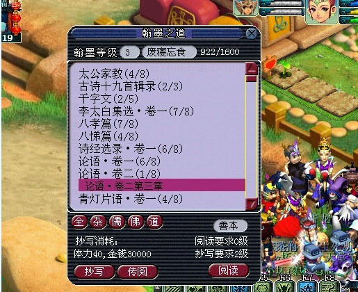 翰墨系统=无底洞啊,学到后面其实也没什么用。卖卖抄本,修修残卷得了,或者还有这么一种可能 卷2 卷3 集成套卖给那几个NPC的价格会越来越高 ,最后越高级的积分越多,学的高级的可以每天靠换套书积分换残卷来赚钱