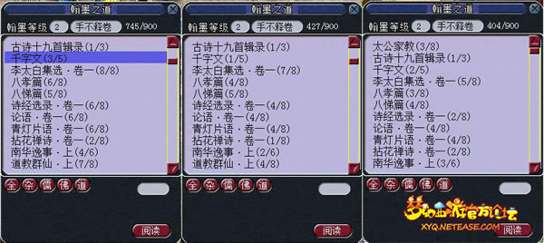 翰墨最吸引我的,大概就是翰墨积分兑换的物品里面有玄天残卷。七夕之前,玄天残卷只有门贡可以兑换,有时候会出现有价无市的情况,翰墨的出现让我眼前一亮。只要集齐一套书上交就能获得积分,积分就能兑换价值不菲的玄天残卷。那么大家最关心的想必就是一套书能换多少积分。在我不惜高价收买千辛万苦的努力下,终于集齐了一套。