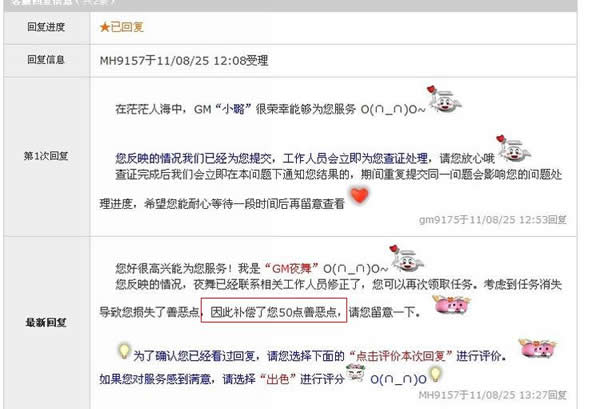 发了那句话后,GM就没回复我了。也没要我在她的评价上打出色了。.等待后来的所谓赔偿。