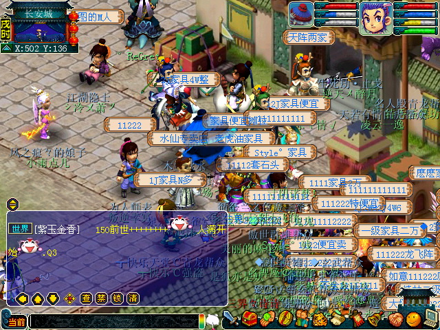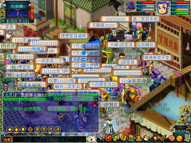 这么多的位置,那么多人的摊位,你想在哪里?哪里才能够显眼?并且财源滚滚呢?卖家具的话,家旁边位置已经是人满为患了,所以我们不仅要在摊位名字上另辟蹊径,而且位置的选择也很关键,那么我比较偏好选在宝石商人旁边。为啥呢?跑镖的人,要从这里路过,取宝图的人也要在这里,那么注定你的收视率和别人的收视率不一样了,那么地利都有了,还有两点是什么呢?人和与天时,现在流行一句话,酒香也怕巷子深,也就是你没有喊话的话,没有适当的宣传的话,别人也不会特别关注你的,所以世界喊话也是一种技巧和艺术。何谓天时?天时即是在适当的时间做适当的事。你懂得我说的