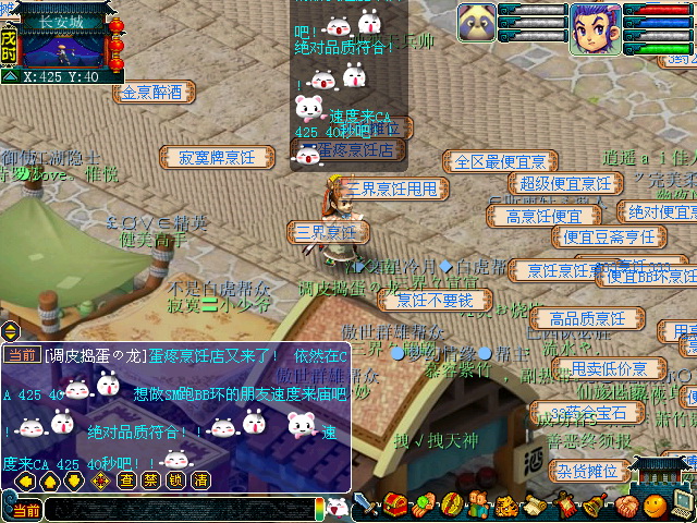 三药和家具烹饪就有比较大区别了,跑环用的到,SM用得到,刷战神又用得到,个人建议,把刷战神的兄弟们作为主要的顾客,最好选在11.30左右开始摆摊,价格嘛,就可以高一些,本来卖药的利润就不是特别高,能多赚就多赚,因为云少本人偏爱刷战神,所以我很少卖3J药,反而是经常买,经常有半夜想刷却找不到药的痛苦。当然摆摊必须比一般的商会卖的便宜点就好 YY一下我们区人多吧?都是红红的。神秘子时卡卡的。
