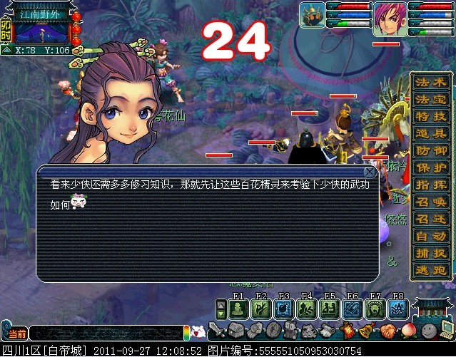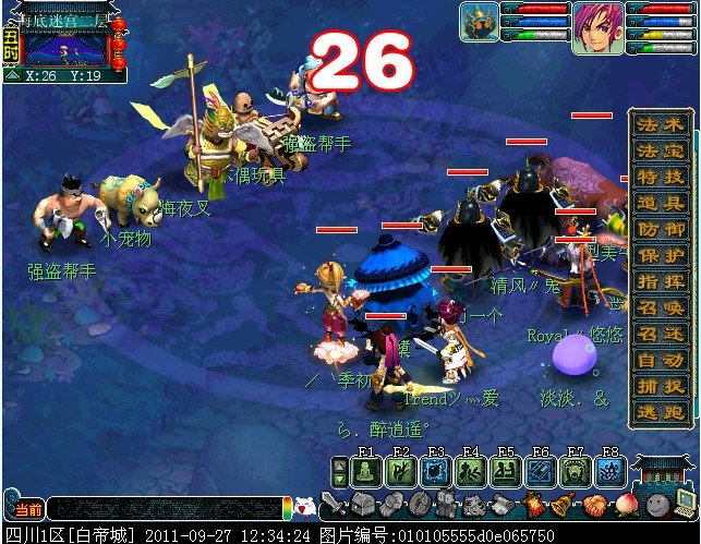 这个封主,把左边的怪物杀掉,不然飞机起来宝宝都得死,右边是和尚放在最后,夜叉基本不要紧的,没有什么危险