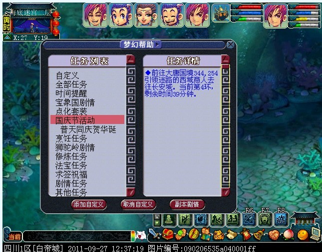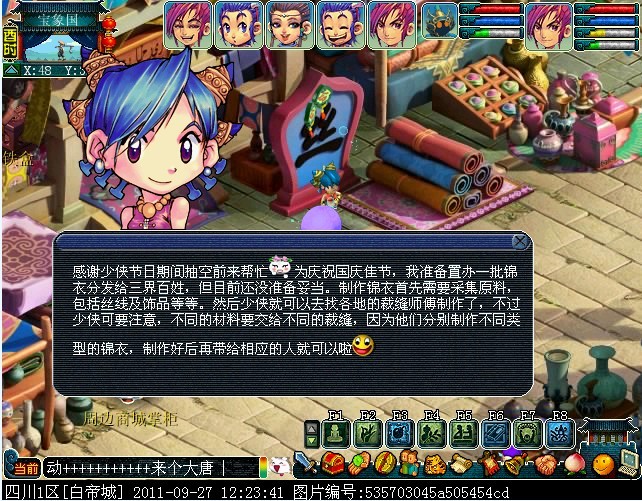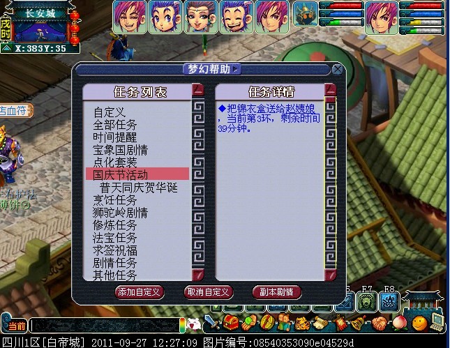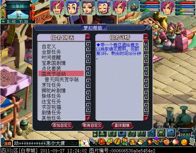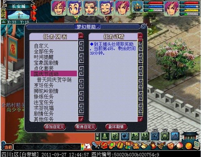 活动介绍:国庆佳节,普天同庆,大唐户部所负责的国庆事务也繁忙起来。户部尚书特此来到长安召集各位前往三界各地帮忙处理一些国庆事务,同时到各处感受欢乐的节日气氛。