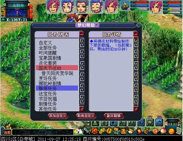 此任务总共分为四轮:唱念做打勤学戏,花开盛世迎佳节,锦衣霓裳倾天下,助人为乐度佳节。每一轮任务都分为几个小环,活动开始(测试队伍平均级别150-160级左右)
