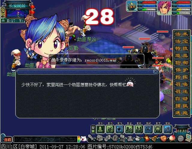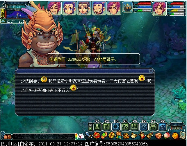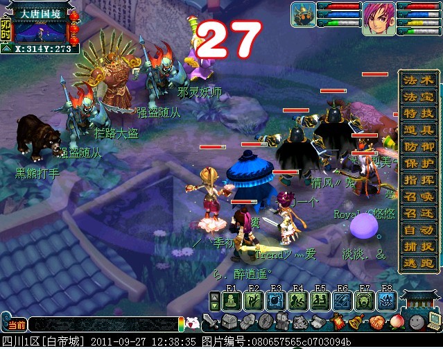 这轮就是送迷路的人在路中遇到的怪物比较强大,主怪是魔王,2个夜叉是龙宫,左边是ST,右边HS,魔王法伤高,狮驼攻击高,化生推1000多血。建议先封ST