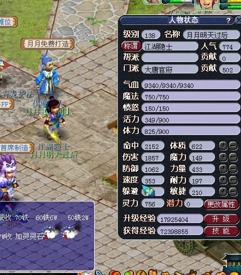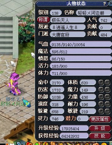 血耐大唐不少见,但是万血大唐你见过吗?可能见过的也多,但是你见过138级的万血大唐吗?下面就是一个138级别的万血大唐属性图.哥们,你要吃多少包子啊。