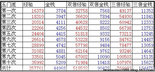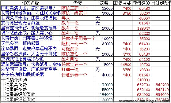 江湖传闻任务共有十四种,图为测试十四种江湖传闻任务的收益。