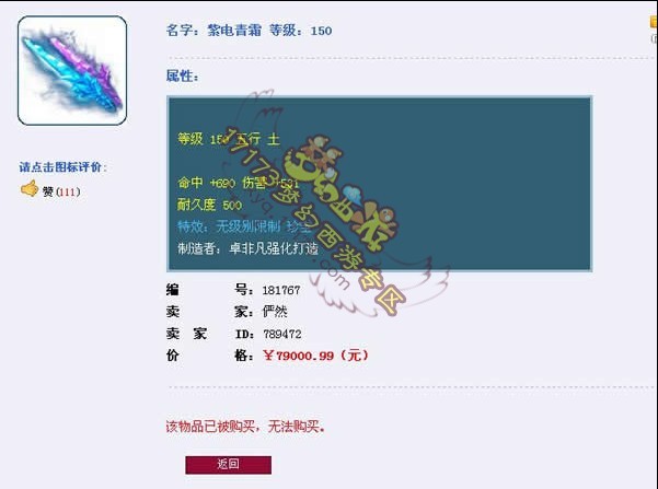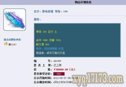 150的无级别可以卖多少?10w,还是15w?事实上是7w9.这个珍宝阁的150无级别双剑在昨天被疯狂的玩家秒走了,成交价是7w9.现在的精锐玩家太疯狂了,从2007年最求400伤的70简易到2009年开始追求80+的无级别,再到现在追求更高伤害的无级别,精锐玩家也开始越来越追求属性上的极限了。