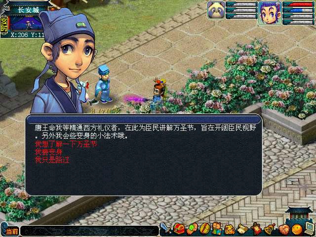 早在2004年梦幻西游就推出了万圣节活动:快乐“万圣节”化妆游梦幻。唐朝时期国力鼎盛,英名远播,对外经济文化交流也日渐频繁。“万圣节”是西方的传统节日,相传在这一天里,人们可以尽情玩闹,或身穿奇装异服,或化妆成妖魔鬼怪,无拘无束地享受节日的欢乐。唐王为开阔臣民视野,促进文化交流,在“万圣节”到来之际找来精通西方礼仪的使者,在长安为百姓介绍万圣节的习俗,让百姓们也能体验这一节日的乐趣。